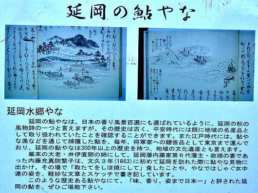 ここには延岡水郷やなの説明板もありました。これによると延岡の鮎やなは300年以上の歴史があるんですね。