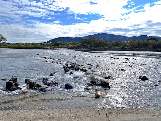 この画像は昨年ここを訪れた時のものです。延岡鮎やなは晩秋の風物詩として毎年必ず掛けられるはずなのに今年はどうしたんでしょうね?例年だとこの時季には全長100mの国内でも最大級の鮎やなが架かっていて、多くの人たちで賑わっているはずなんですよね。