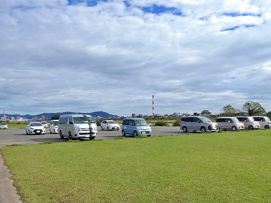それでもお食事処のオープン時間が近づいてくると、河川敷の駐車場には徐々に車が増えてきました。落ち鮎料理が食べられるのはわずかな期間だけなので、毎年この時季を楽しみにしている人が多いんでしょうね?
