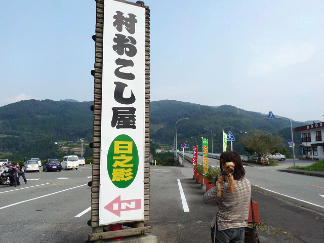 ここにはこんな看板もありました、村おこし屋って何だろうね?道路の先には青雲橋も見えています。