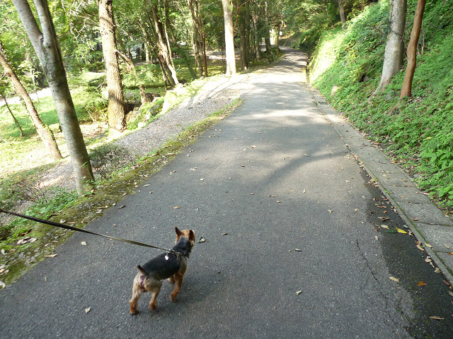 おっと、いきなりワンコに遭遇だよ、僕以外にもここの散策をするワンコがいるんだね、