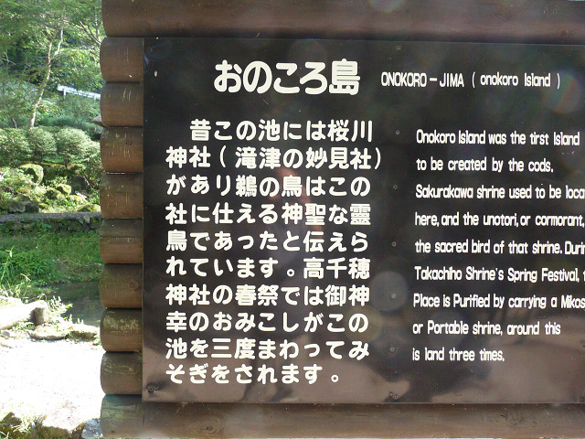 この池はおのころ池と言うそうで、池の中央部にある小さな島をおのころ島って言うんだって、