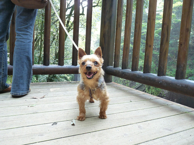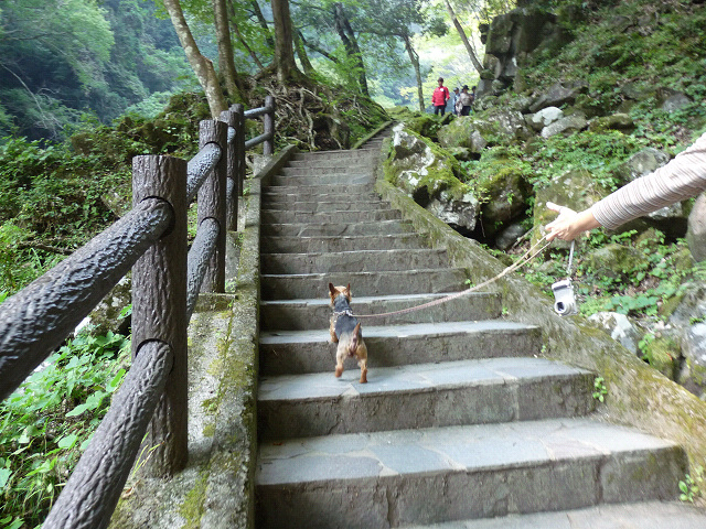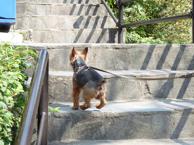 りゅう君はうれしくて階段をジャンプして上がって行きます、りゅう君すごいね、前脚だけで立ってるよ、
