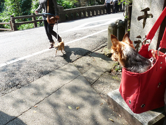このあたりはまだ道幅も狭いし、人もたくさん通ってたから僕はバッグの中だよ。