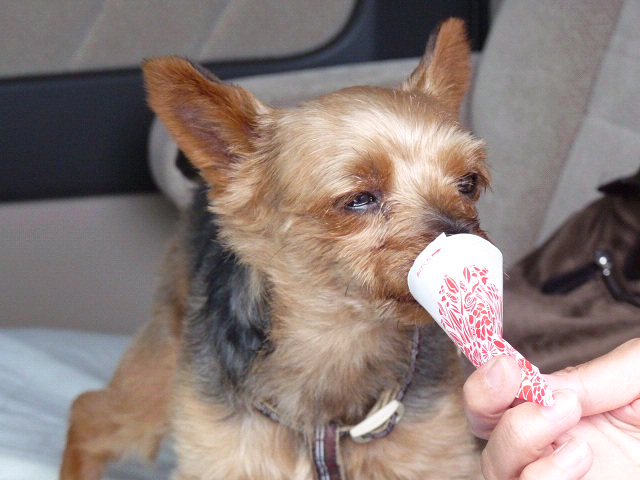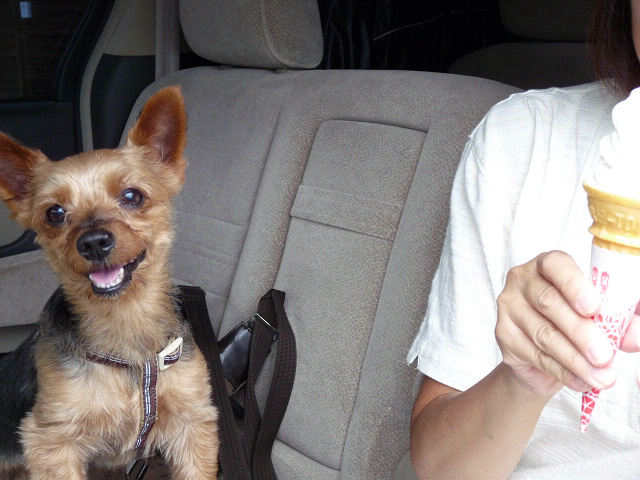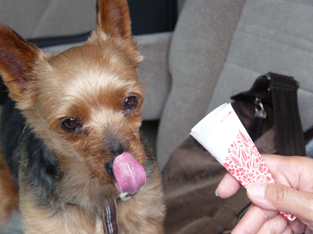 ママがソフトクリームを食べてるよ、僕もほしいなぁ、