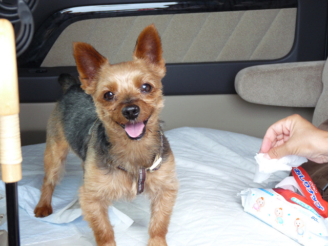 さっきまでの大雨で地面はまだびっしょりだよ、お散歩は出来るんだろうか?