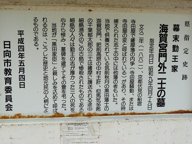 へぇ、あの有名な寺田屋事件と関係があるんだね、ここには3人の武士のお墓もありました。