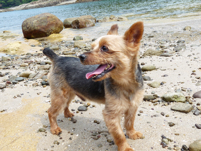 りゅう君は海に向ってさかんに吠えています、何故かりゅう君は波の音に異常に興奮するんです。