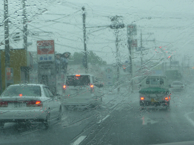 日向岬を出発して延岡方面へと進み始めたとたんに、ものすごい雨が降ってきました。