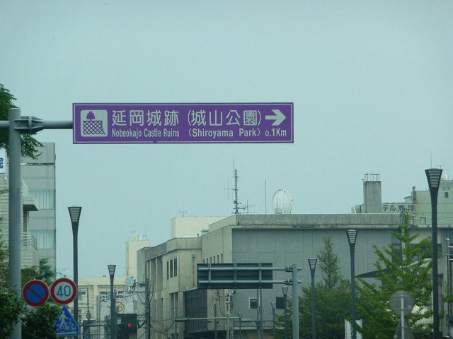 門川町から延岡道路を通って延岡市内に入ると延岡城跡の看板が見えてきました、
