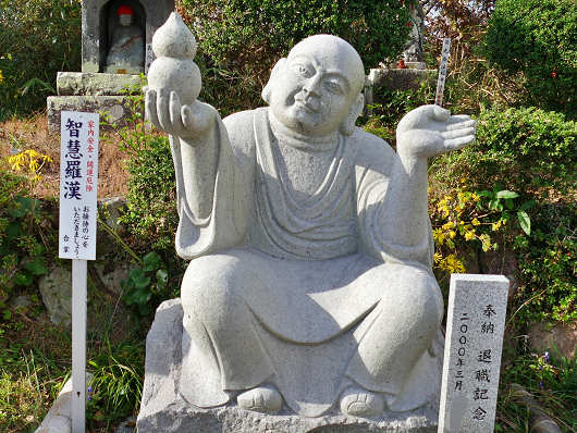 この石像には「智慧羅漢」と書かれていて、右側の石柱には「奉納 退職記念」と刻まれていました。