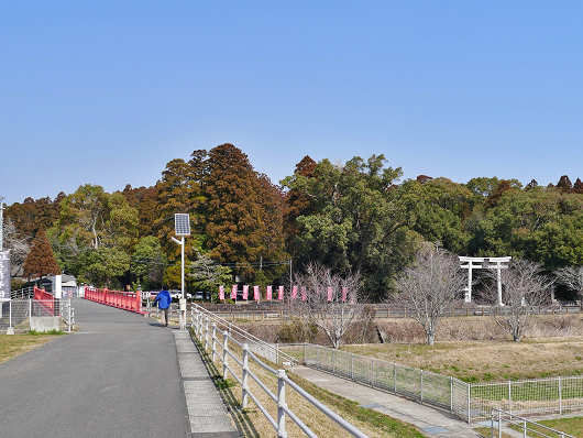川に架かる赤い橋を渡ると、都農神社の拝殿、本殿へと続く鳥居があるので、この鳥居を潜って参道を拝殿へ向かって歩きました。都農神社には何ヵ所かに鳥居がありますが、位置的にはここが本殿へと真っすぐに続いているので表参道になるんでしょうね。