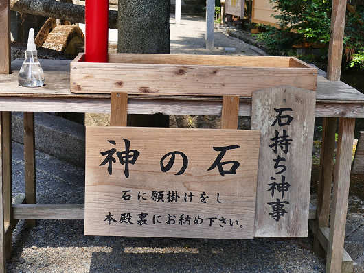 山門の手前には「神の石」と書かれた木箱に入った黒い石がたくさんありました。ここでお賽銭をあげて石をひとつ貰います。この石に願いを込めて納めると願い事が成就するそうです。
