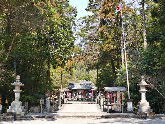 石を持ったら山門を潜って本殿へ向かいましたが、この画像は山門を潜り抜けて振り返った景色です。この山門の両側にも見所があります。
