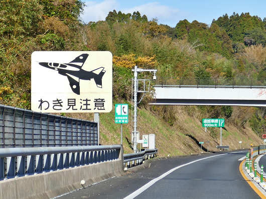 しばらくすると東九州道は、航空自衛隊の新田原基地の近くを通るので、行きにも見た「わき見注意」の看板が見えてきますが、今回の旅行では行きも帰りもこの辺りでは全く戦闘機を見ませんでした。過去にここを通った時には高速道を跨いで低空飛行する戦闘機を何度も見ましたが、今回はちょっと残念な結果でした(笑)