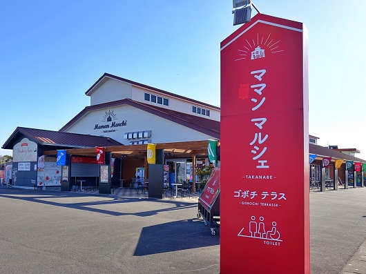 東九州道を降りて国道10号へ出たら、国道沿いにある複合施設の「ママン・マルシェ 高鍋」へ車を停めました。ここは秋にりゅうママとフルーツパフェを食べようと高鍋町の津久見屋果実店を訪れた時にも、前を通って気になっていたところですが、その時は時間の都合で寄れなかったので、今回初めてここを訪れてみました。