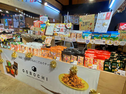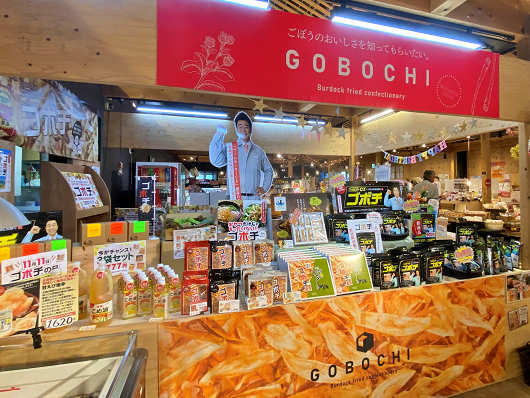 ここは平成29年末にオープンした比較的新しい施設で、フードコートの奥には高鍋産を中心とした農産物などが所狭しと並べられていて、その一角には最近話題となっている「ゴボチ」の特設コーナーがあって、色んな種類のゴボチが並べられていました。
