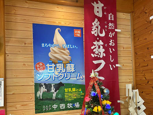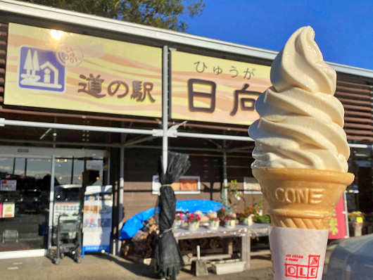 ママンマルシェ高鍋でゴボチを買って出発したら国道10号を北上して、道の駅 日向でトイレ休憩をしましたが、りゅうママは目ざとく「甘乳蘇ソフトクリーム」の看板を見つけて、トイレへも行かずに店内へと入って行きました。