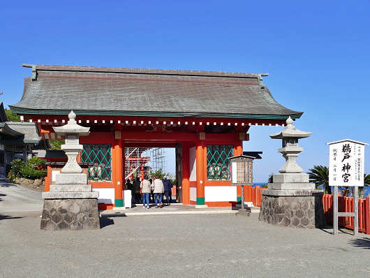 鵜戸神宮の第一駐車場へ戻ったら、これから二ノ鳥居を潜って波打ち際の岩窟内に鎮座する鵜戸神宮の本殿を目指します。