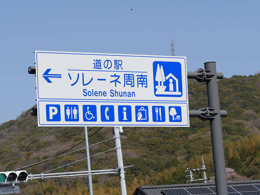 防府天満宮から国道2号を十数kmほど周南市方面へ向かって走ると、次の目的地の「道の駅 ソレーネ周南」の標識が見えてきます。「ソレーネ」ってここを訪れ時点では意味不明でしたが、帰ってから調べたら山口の方言で「そうだね」って意味だそうです。