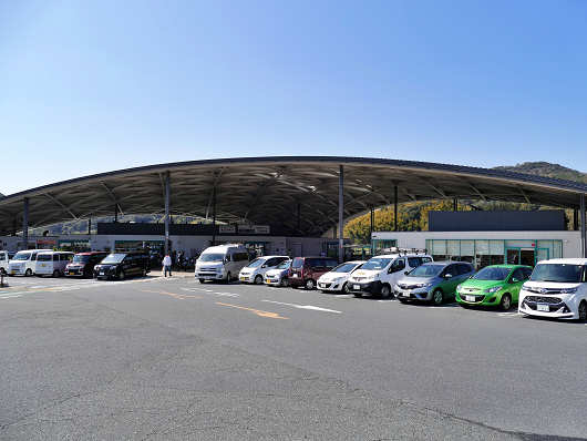 ここが「道の駅 ソレーネ周南」の建物です。建物自体はあまり大きくはありませんが、その上を覆っているドームのような形をした巨大な屋根が特徴的ですね。駐車場に車を停めたらさっそく物産館へと行ってみます。