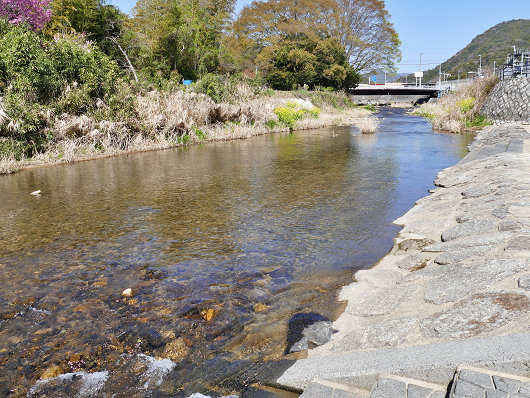 この様な透き通ったきれいな清流のような川が流れていました。周囲には川に入れるように階段も設置されていて、水際はコンクリート舗装されて足場がよくて浅い川だったので、これからの季節は子供たちの水遊びで賑わうでしょうね。