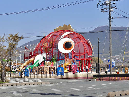 そして道の駅の目の前には遊具のある公園がありましたが、巨大な魚の形をしていて、大きな目玉が特徴的なとてもユニークな遊具でした。