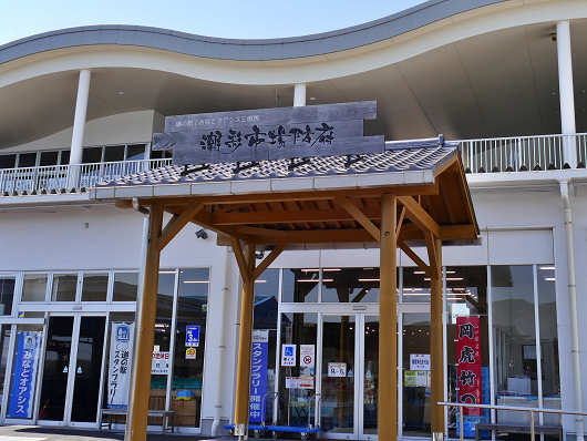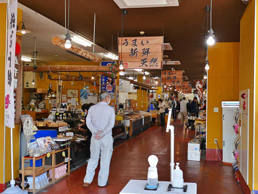道の駅の駐車場に車を停めたら、さっそく物産館へと入りました。館内は撮影していませんが、外観から想像するよりもかなり狭くて、魚のすり身や干物などの加工品を多く売っていました。