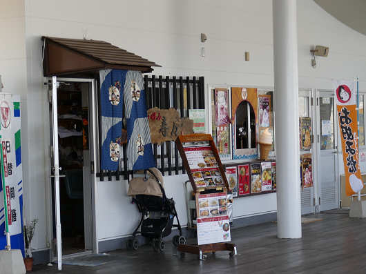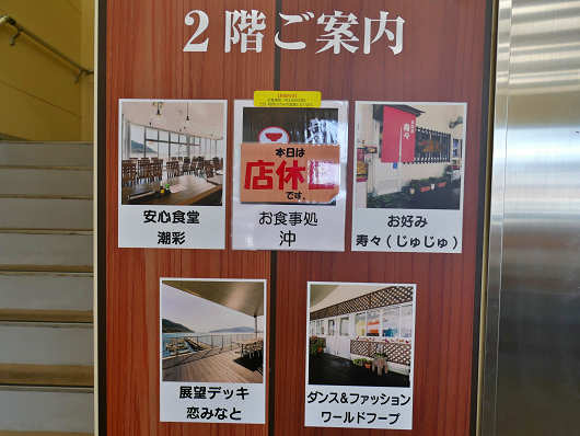 物産館にはこの様な貼り紙もあって、2階は展望デッキになっていて、3店舗のお食事処などが入っているようでした。