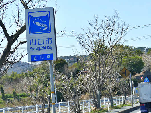 標識のあるところを左折して、国道2号から県道25号へ入ってしばらくすると、防府市から山口市へと入りました。