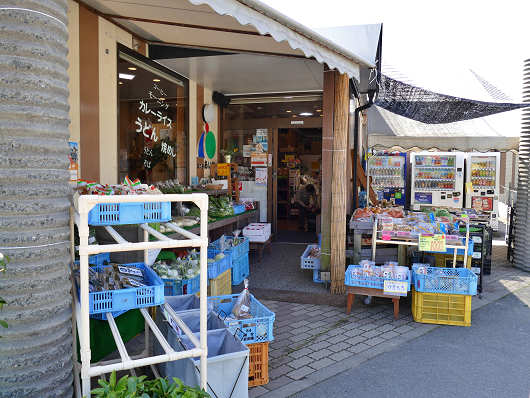 ここから物産館内へ入るようでしたが、入り口はとても狭くて人同士がすれ違えないほどでした。店頭には地元産の野菜などがずらりと並べられていましたが、店内は数歩も歩けば見て廻れるほど狭くて、田舎の方へ行ったらよく見かける農産物の直売所って感じでした(笑)