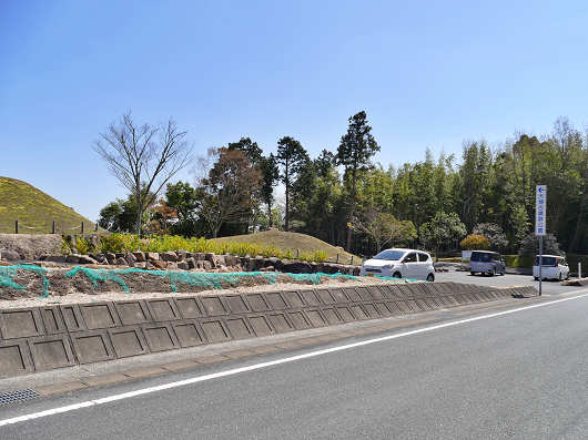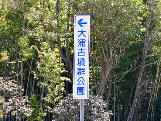 ここが次の目的地の「大浦(おおら)古墳群公園」です。県道212号は高規格道路なので、ここへは直接は行けないので、公園を通り過ぎた先で県道を降りてUターンして、公園の前を走る狭い道へと入りました。