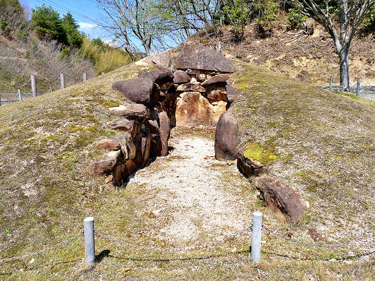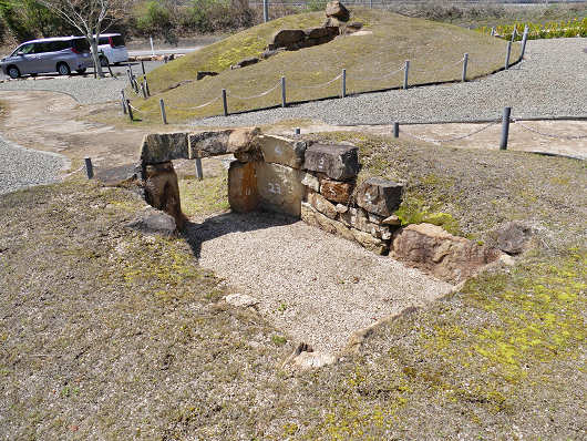 そしてほとんど古墳は上部の盛り土が無くて石室が丸見えの状態でした。説明板によるとこれらの古墳は、調査時にはすでに天井部分の石が無くなっていたそうですから、かなり昔に盗掘に遭ったんでしょうね。