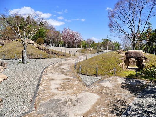 公園の駐車場に車を停めたらさっそく古墳の見学です。九州にも古墳はたくさんあって、これまでにも色んな古墳を見学していますが、いずれも巨大な前方後円墳や円墳だったのに対して、ここに移築されている古墳はどれも小規模な円墳でした。