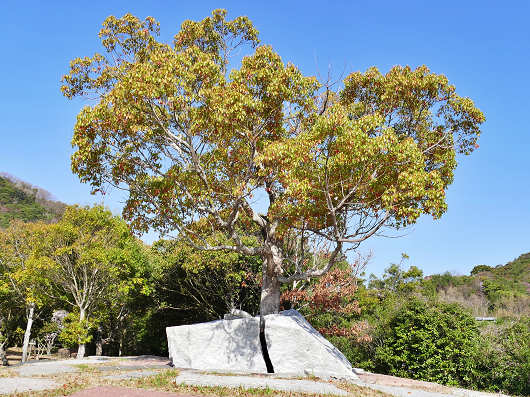 緑地の中には岩の割れ目から樹木が伸びたような、芸術作品?らしきものがいくつかありました。初めてここを訪れた時には、本当に樹木が岩を割って伸びていると思って、根本付近をしげしげと眺めたんですよね(笑)
