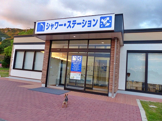 この画像はりゅう君と車中泊をした時のものです。この時はシャワーを終えてりゅう君のお散歩をしていたら、理由は分かりませんが、りゅう君はシャワー・ステーションの前から離れようとせずに中へ入りたがっていました。りゅう君がシャワーを浴びたかったということは無いでしょうが、お散歩をする直前に私がここから出てきたのをりゅう君は車内から見ていたので、中に何があるのか興味があったのかもしれませんね(笑)