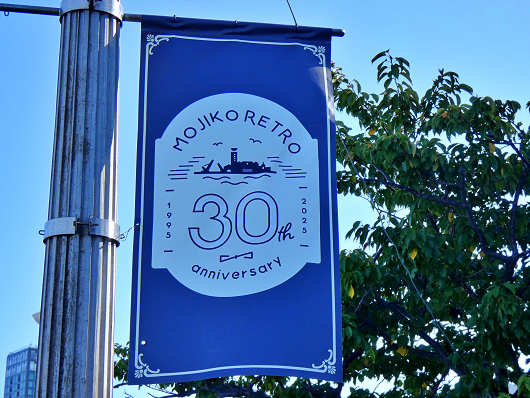 遊歩道にはこの様な幟?がいくつも掲げられて、風にはためいていました。門司港レトロは大正レトロな港として整備されて、九州を代表する観光スポットのひとつとして今年で30周年を迎えたんですよね。