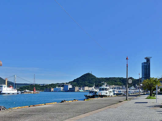 関門海峡ミュージアムの駐車場からは、唐戸市場への定期船が出ている船着き場へ行くために、門司港レトロの中心部へ向かって海沿いの遊歩道を歩きました。