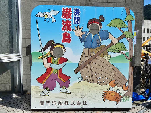 ここにはこの様な顔ハメパネルもありました。関門汽船は門司港と唐戸市場の間を毎日往復で数十便ほど運航していますが、巌流島への渡船は土日祝日のみで平日は運航していないんですよね。ちなみに唐戸市場から巌流島へは毎日運航しているそうです。