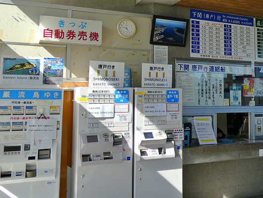 唐戸市場への乗船券を買うために建物内へ入りました。乗船券は片道分のみの販売で自動券売機で買います。往復割引などはありませんでしたが、片道料金は400円とお安い運賃でした。