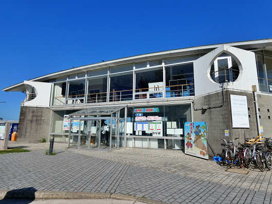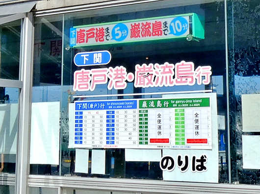 建物の前には唐戸港まで5分、巌流島まで10分と書かれていて、ここからは山口県下関市の唐戸市場と、宮本武蔵と佐々木小次郎の決闘で有名な関門海峡に浮かぶ小島の「巌流島」への船が出ています。