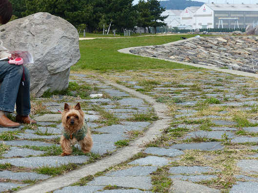 りゅう君のお散歩はまだまだ続きます、でもりゅうママはちょっとお疲れなのか?ベンチで休憩です、