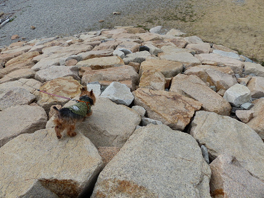 さっそく砂浜へと石積みを飛び越えて行ってみます、
