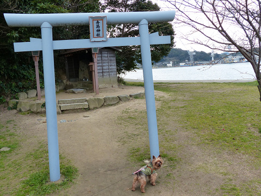 船から下りてママにリードを着けてもらい、これから巌流島の散策開始です、