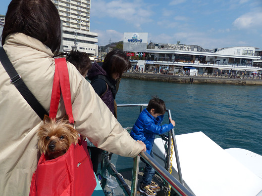 帰りの船も一番乗りで乗船です、でもワンコはデッキ席だけで数も少ないからデッキ席が満席になったらワンコ連れの人はどうするんだろうね?客室にも入れてもらえるとありがたいんだけど・・・