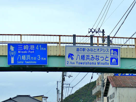 国道197号をしばらく走ると八幡浜市街地へ入って、道の駅「八幡浜みなっと」の標識が見えてきました。ここは四国旅行の初日にフェリーを降りたところにあった道の駅ですが、その時は時間の都合でスルーしたところなので、ちょっとだけ寄ってみることにしました。
