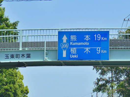 玉名市からお家までは150kmほどの距離があるので、ここから先は何ヵ所か寄り道をしながら、お家のある大分市方面へと進みます。まずは国道208号を南下して熊本市植木町を目指しました。