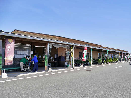 この建物が道の駅の物産館です。平屋で横にとても長い建物でした。駐車場は普通車99台と大型車7台が駐車できるので、そんなに小さな道の駅じゃありませんが、あまり道の駅ってイメージがしませんね。