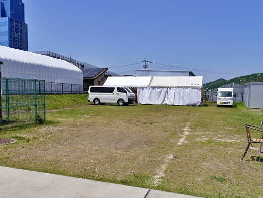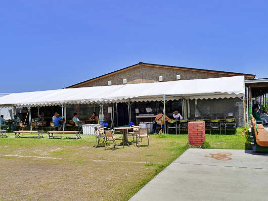 建物の端っこには一応テントが張られた屋外休憩所もあって、この時も数人の人たちが食事などをしているようでした。