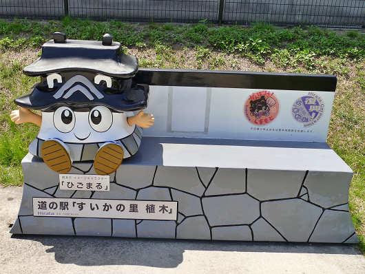 芝生広場の横には熊本市のイメージキャラクターの「ひごまる」が座ったベンチのようなものもありました。ここで「ひごまる」と並んで座って記念撮影をするんでしょうか?